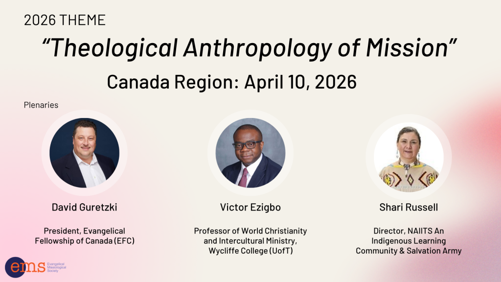The EMS Canada Regional Conference in April is your opportunity to contribute to critical missiological conversations rooted in Canadian contexts and geared toward global impact. Scholars, reflective practitioners, and learners alike are invited to explore this year’s theme “Ecclesiology & Mission,” focusing on the Church’s identity and role as a dynamic mission community.